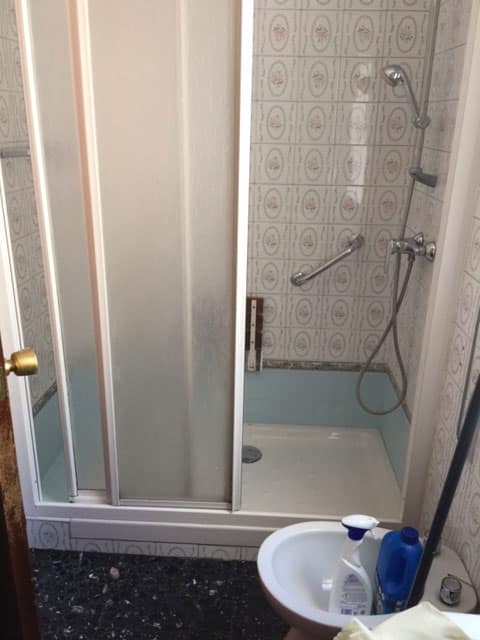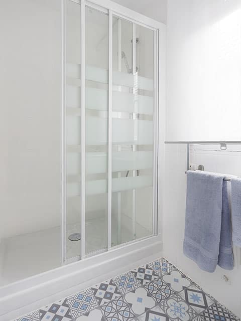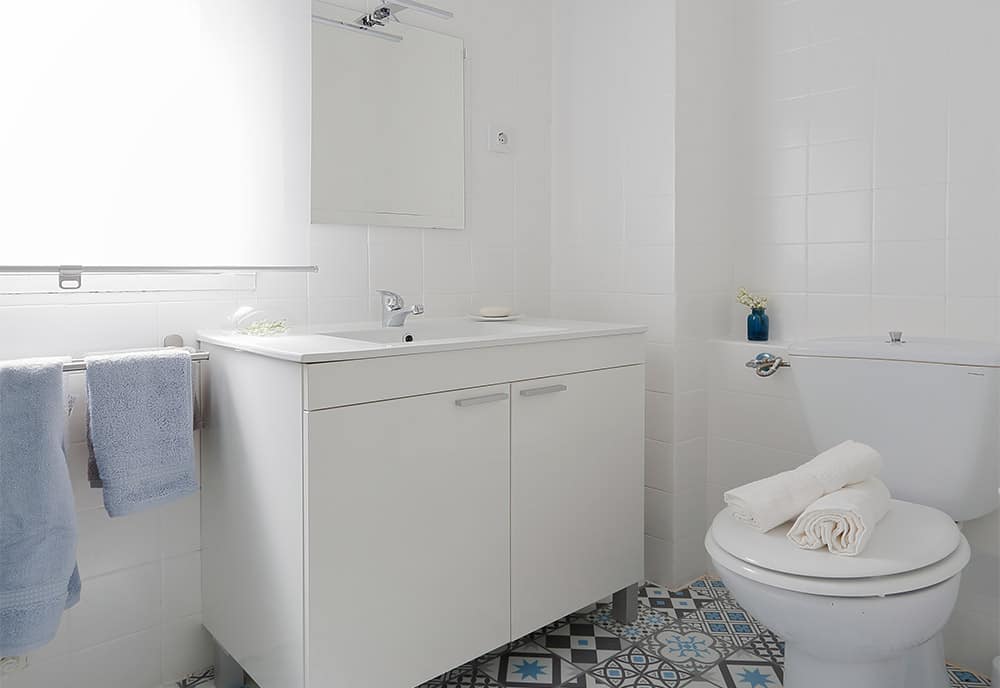 La dueña del piso pretendía una inquilina estudiante. Prefiriendo este género, nosotros colocamos unos colores más amables con distintas tonalidades rosas y florales. Lo que más podemos destacar es el baño, ya que a la dueña le gustó tanto que ni siquiera lo reconoció como suyo.