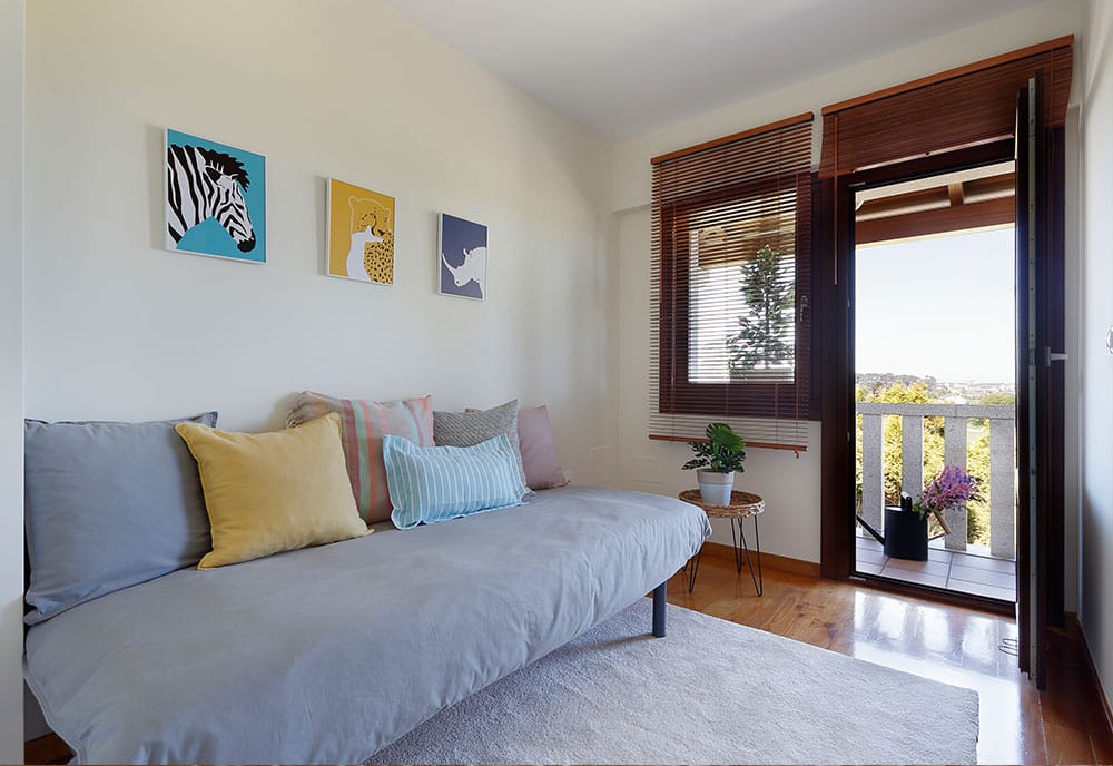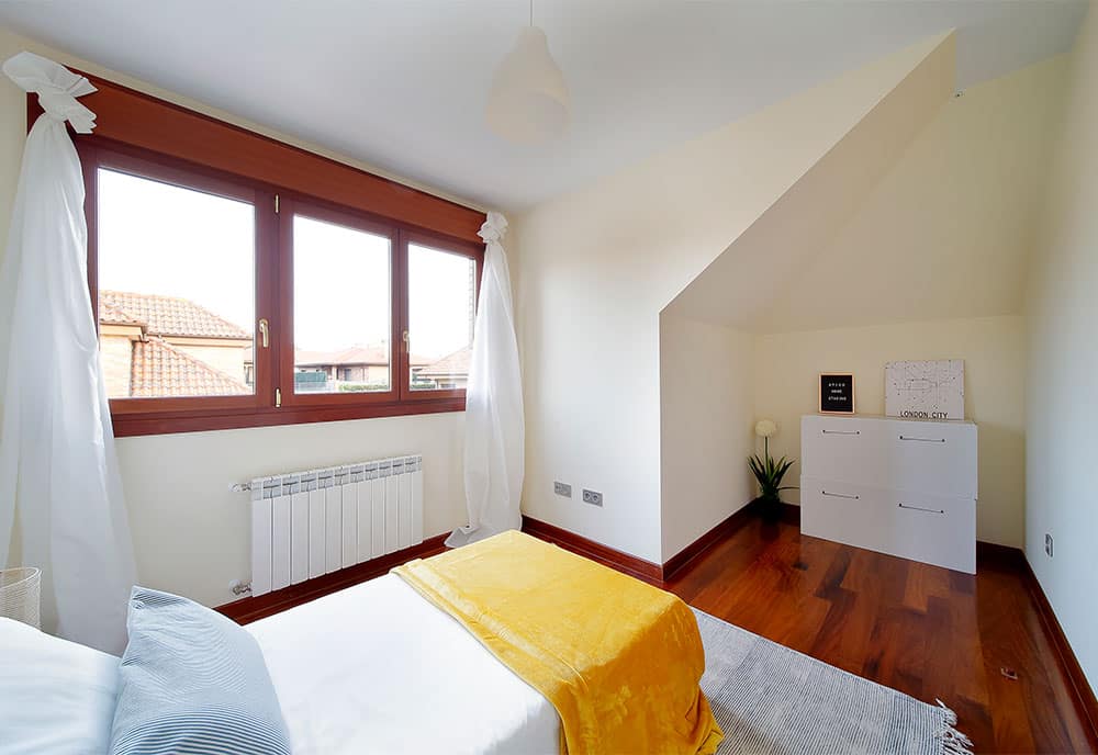 En este caso era un chalet que contaba con hasta cinco habitaciones. Amueblar con mueble real todas estas estancias para crear tentación por parte del cliente tendría un resultado muy costoso. Existe una herramienta efectiva dentro del home staging llamada ‘mueble efímero’ o mayormente conocido como mueble de cartón que nos permite causar esta sensación que queremos transmitir sin amueblar realmente la vivienda. Y apenas se nota la diferencia.