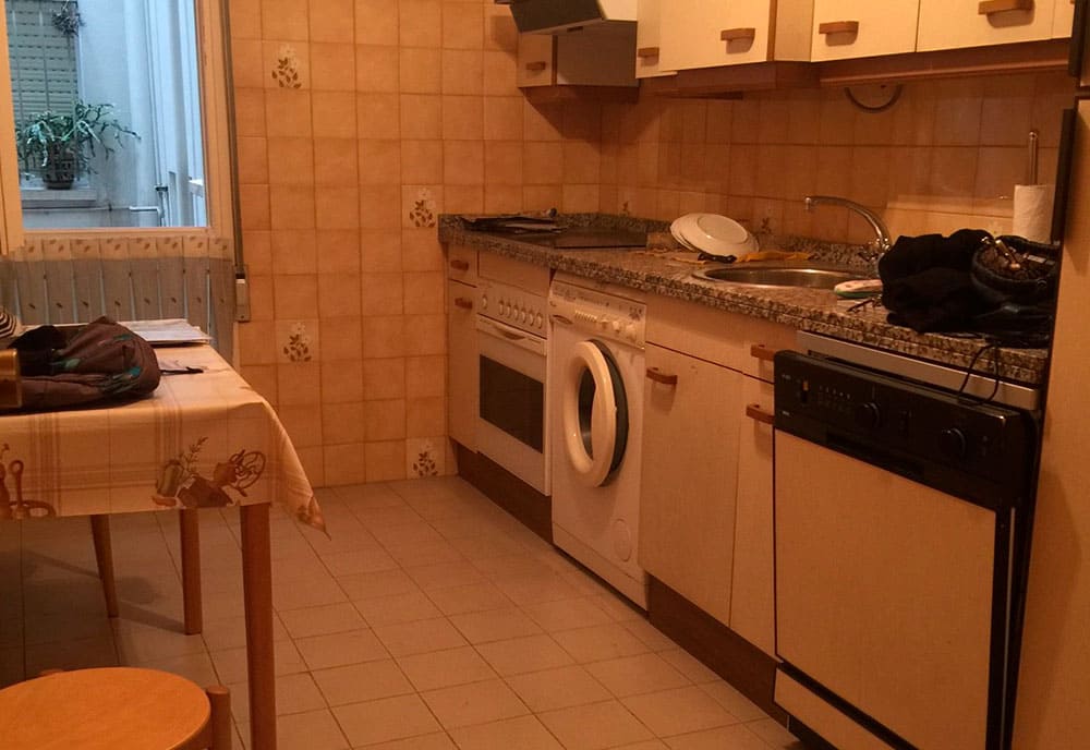 Nos encontramos una casa anticuada, pintada de color amarillo con muebles antiguos y con tan solo ver las fotos del portal inmobiliario no apetecía entrar a vivir allí.