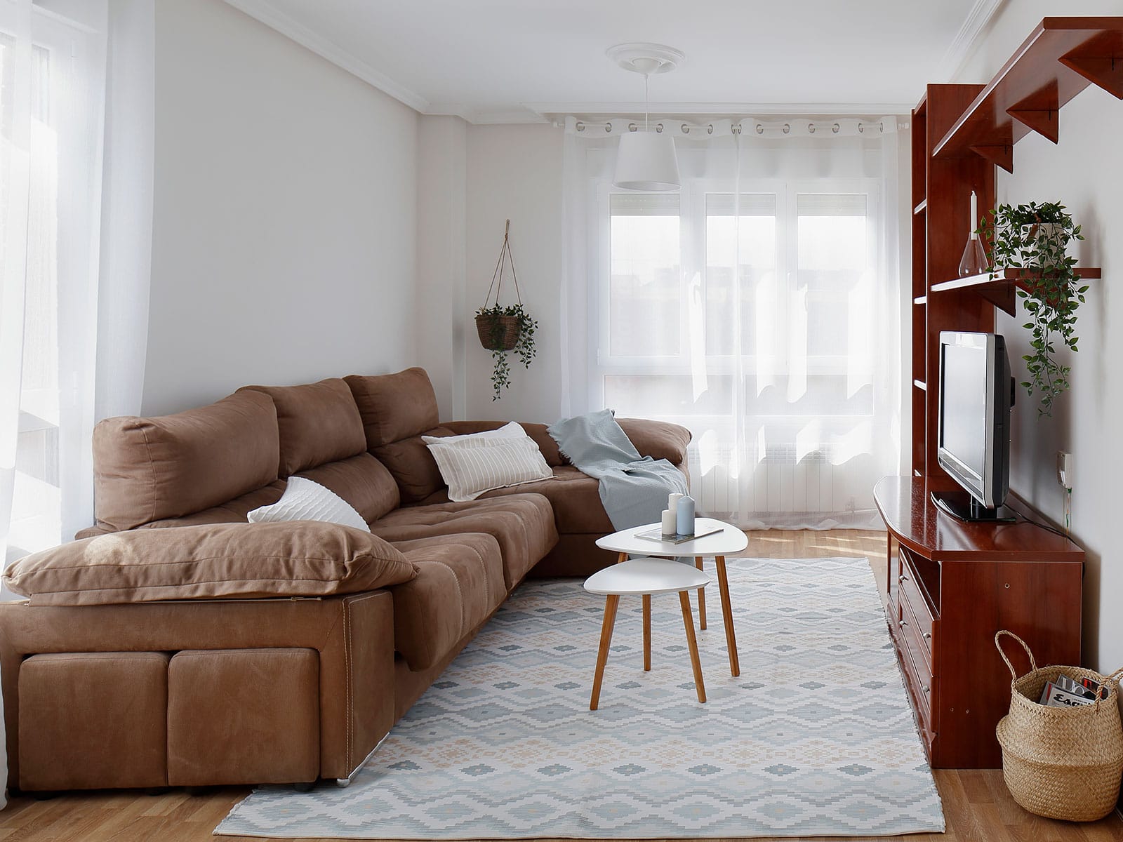 En este salón elegimos unos muebles muy sencillos porque disponíamos de poco presupuesto, pero ya veis que tan solo con descubrir esa nueva ventana fuimos capaces de agregar un montón de luz natural al espacio, logrando un resultado muy distinto.