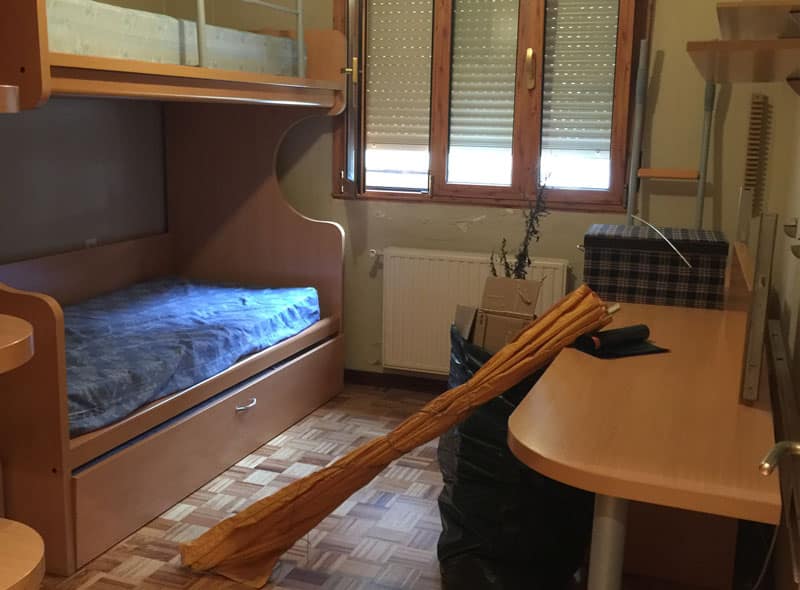 Tal y como podéis ver en la comparación de la izquierda, se trata de la habitación más pequeña del apartamento. En un apartamento sin amueblar, siendo una habitación pequeña, parecía darse a entender que en esta no entraba ni un solo mueble.